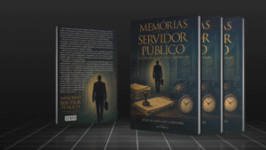 Vinheta inicial em motion 3D para o documentário Memórias de um Servidor Público, recriando o livro em diversos ângulos com impacto visual.